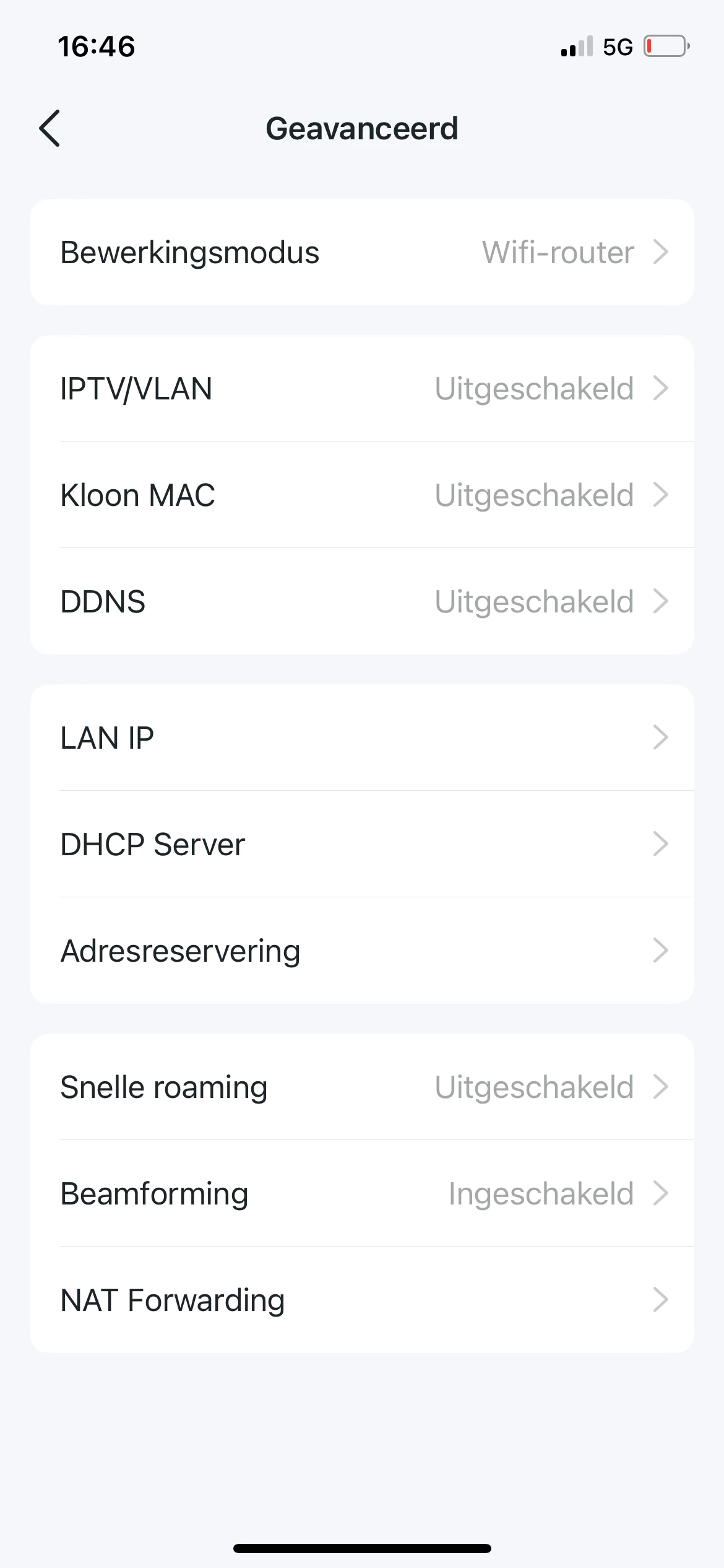 router modus volgens de app. Wel IPv4, IPv6 niet ingeschakeld.