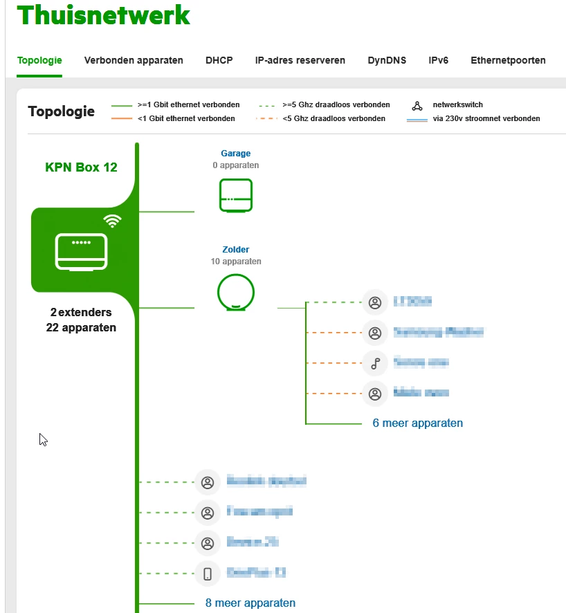 Ik vind de weergave verwarrend nu. Devices welke nu met de superwifi2 verbonden zijn zie je in topologie niet terug onder de superwifi2, maar onder de box 12 met verbindingstype LAN en netwerknaam Ethernet 4 (op deze poort is de superwifi2 gekoppeld). Logischer zou zijn om deze devices dan te tonen onder het superwifi punt zelf met verbindingstype wifi.