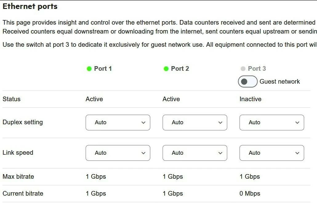 Goed te controleren via het thuisnetwerkmenu binnen de modem en de rubriek ethernetpoorten.