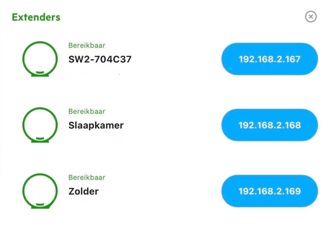 Dat de apparaten verbinden met het modem en niet met de SW punten is wel iets wat we meenemen naar de ontwikkelaars zodat zij dat ook kunnen bekijken.