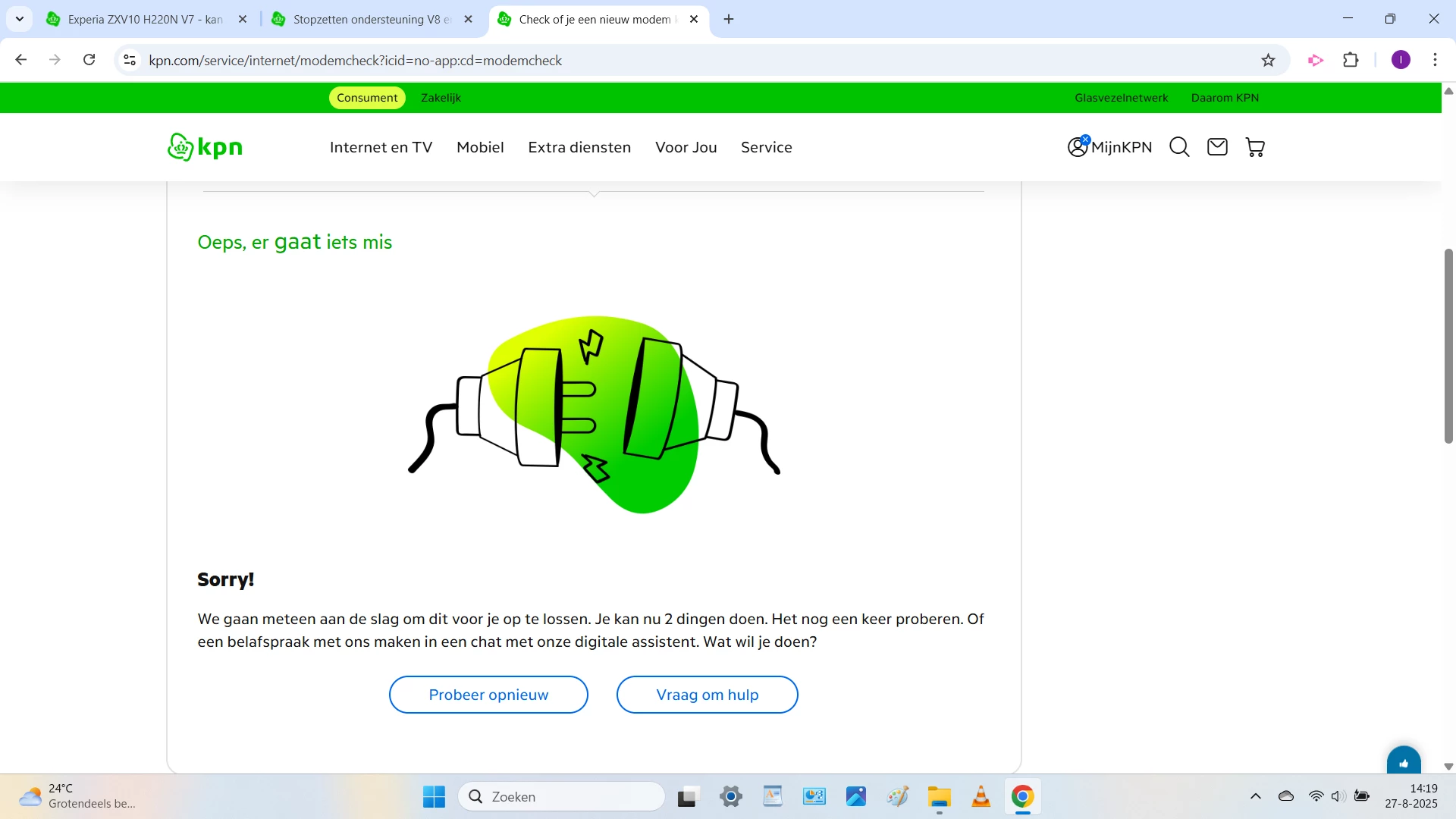 Edit: zelf een nieuwe modem aanvragen via de website geeft een foutmelding: ā€œOeps, er gaat iets misā€ en kan ook niet.Ā