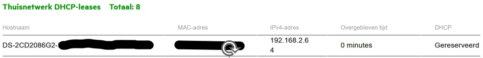 DHCP aanzetten op de camera in plaats van vast IP adres op de camera was de gouden tip. Alles werkt, probleem opgelost. Dank je wel ​@Marlon92 (en anderen).
