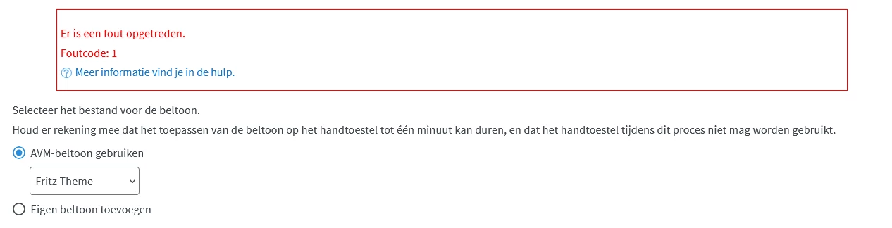 Bij het vrijgeven van poorten èn bij het kiezen met de FRITZ!Fon C6 van een AVM-beltoon krijg je een rode Foutcode: 1 als je op Toepassen drukt. Dan ga je blauwe < Terug en is dan is het toch veranderd.