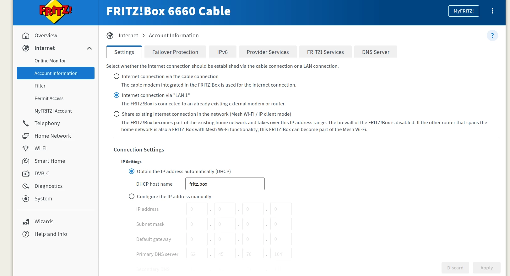 Het is vreemd ​@DarthRobol , maar ik kan bij de site van Fritz voor deze Fritz!Box 6660 geen enkele info vinden voor aansluiten op glasvezel, dit modem was kennelijk puur als kabelmodem bedoeld en kan op andere wijze kennelijk geen PPPoE verbinding opzetten, het enige wat ik verder vind is aansluiting achter een bestaand modem:
