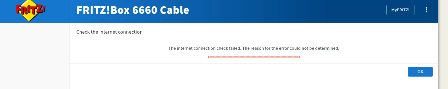 Ik krijg als ik de netwerkkabel, die van het ONT, in de LAN1 poort stop van de Fritzbox en ik log in op de Fritzbox de volgende melding: