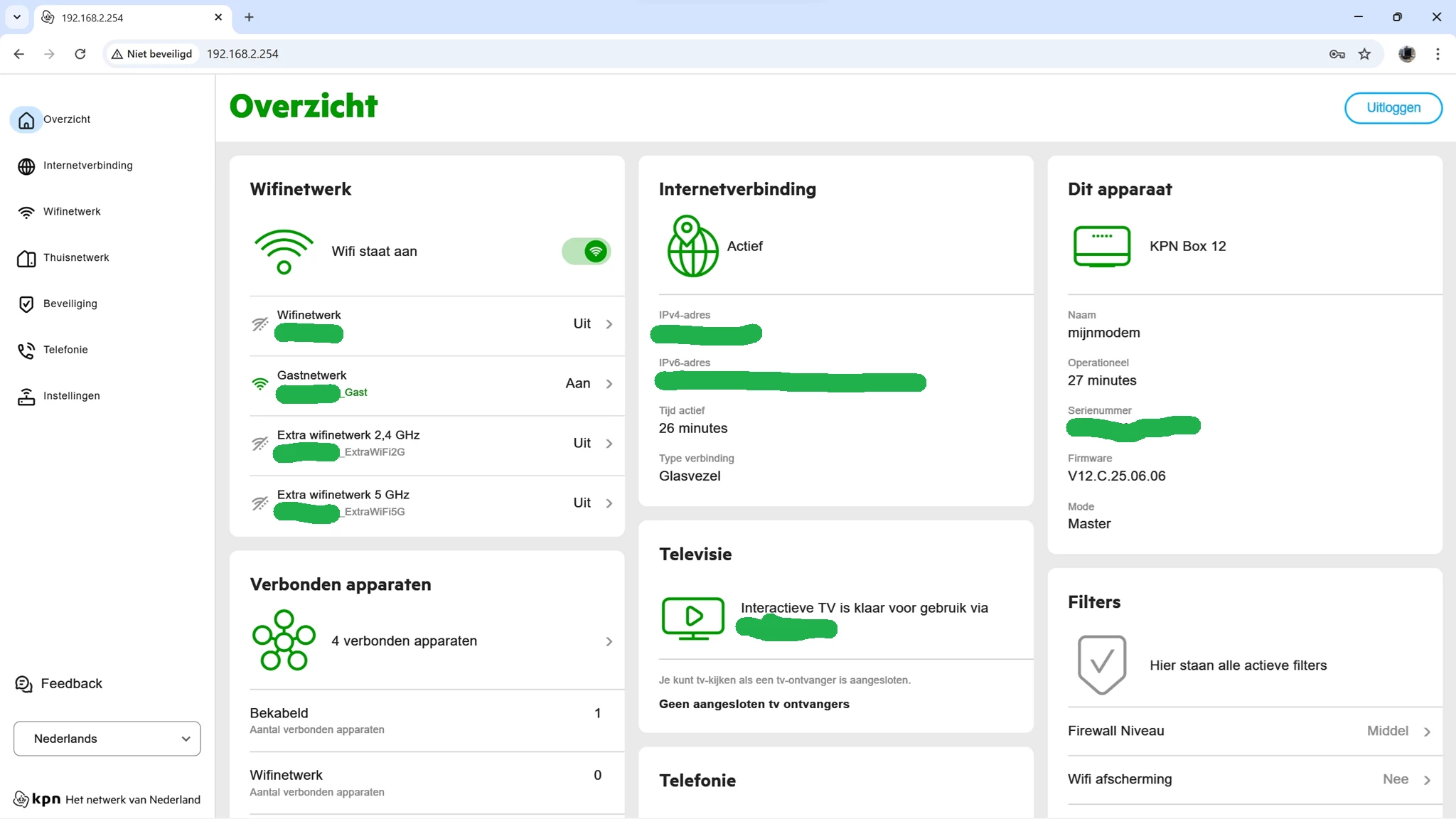 Sinds een week heb ik glasvezel van KPN met de Box 12.