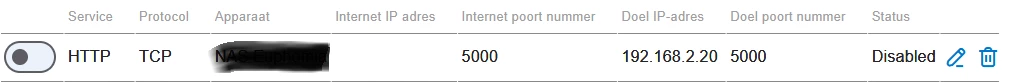 Maar een nieuwe regel. Met service nieuw. En gebruik poort 5001 werkt het dan wel als je geen quickconnect gebruikt