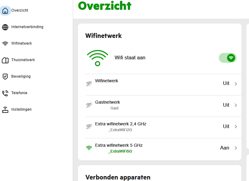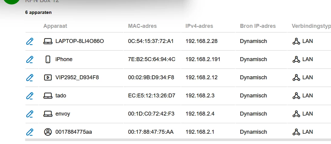 Ook werkt de webinterface nu vreemd en lijkt het of bijv. onze telefoons op een LAN zijn aangesloten