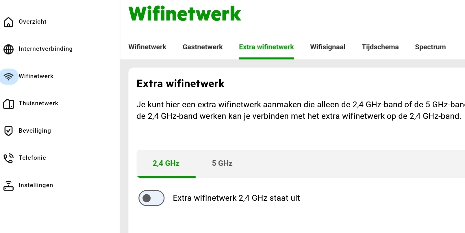 Er kan alleen  middels het tabblad Extra Wifi netwerk een 2,4 ghz only optie worden toegepast.