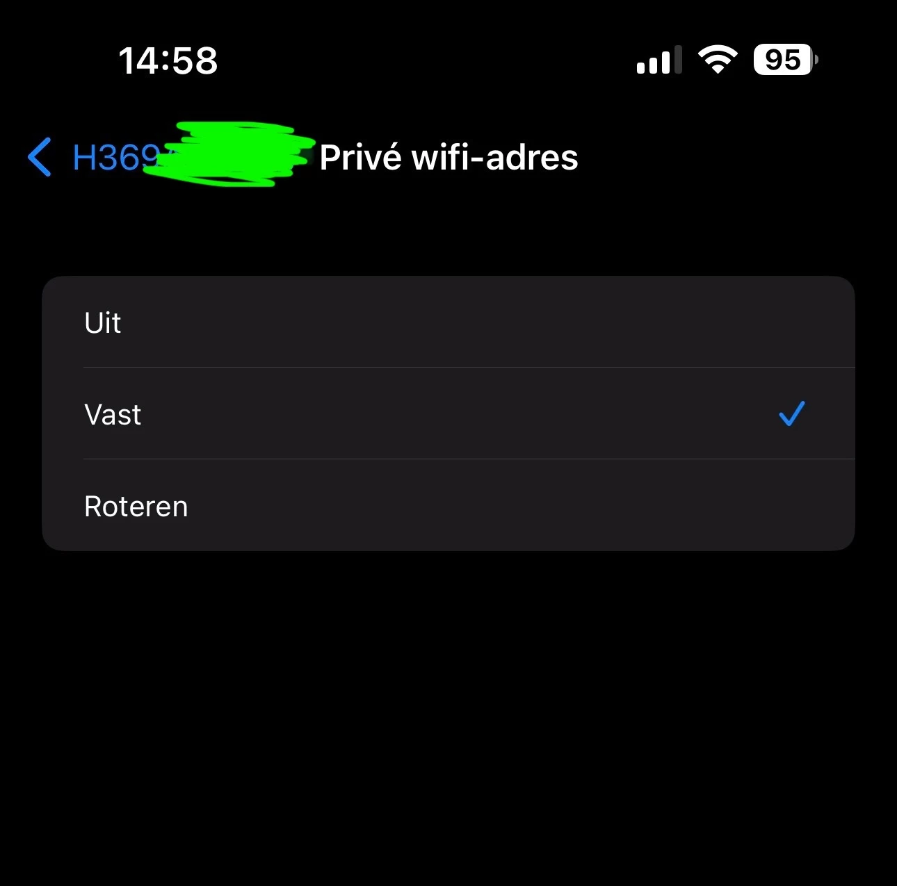 Onder privacy heb je dan de keuze om een willekeurig MAC adres te gebruiken of die van het apparaat