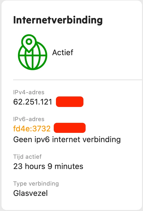 Ik heb geen IPv6 internet verbinding (v12) sinds laatste contact helpdesk