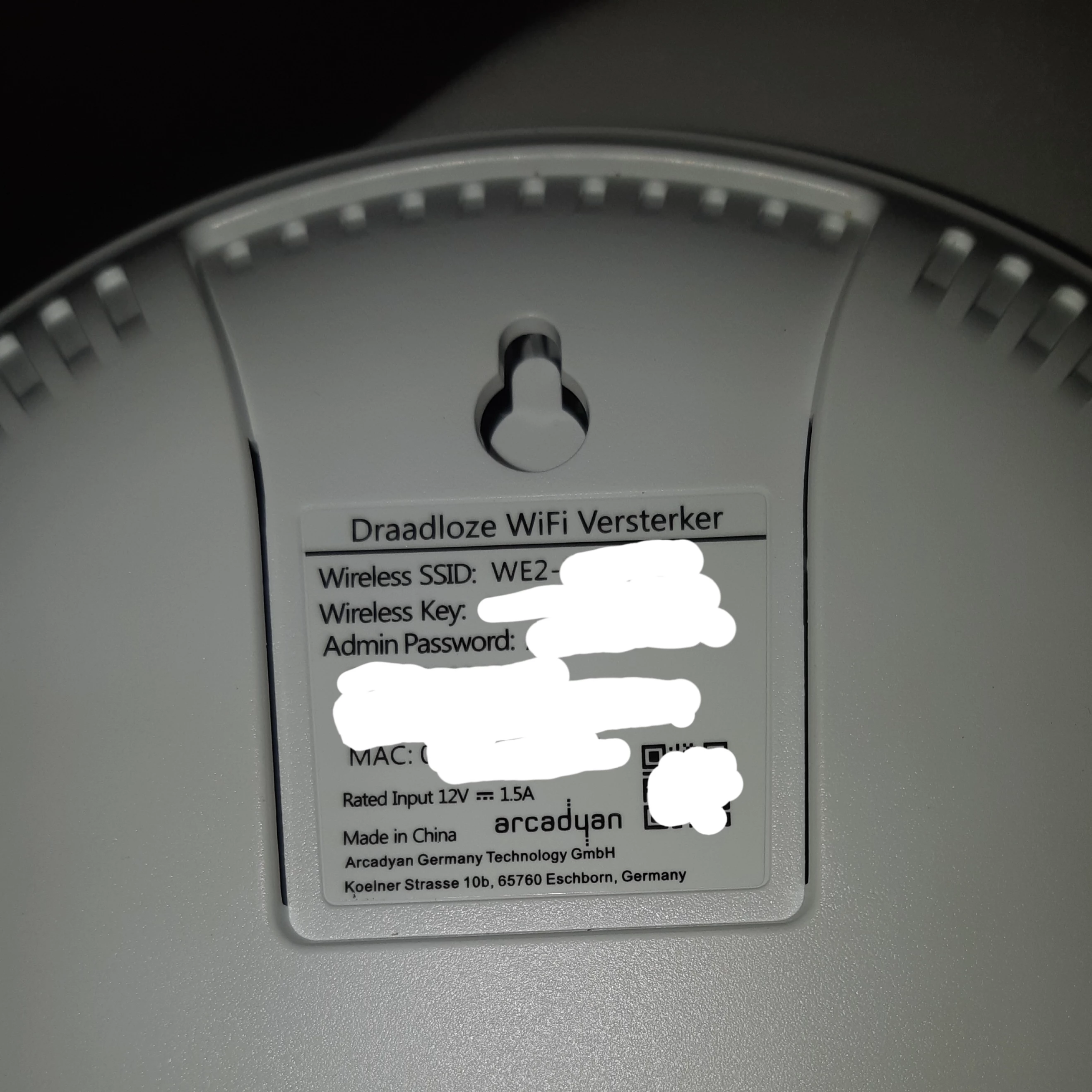 Ahhh en dan kan ik natuurlijk via dat IP adres inloggen. Lampje van versterker gaat ook blauw knipperen als ik naar het IP adres ga. Maar het wachtwoord (op onderkant WIFI punt) werkt niet….