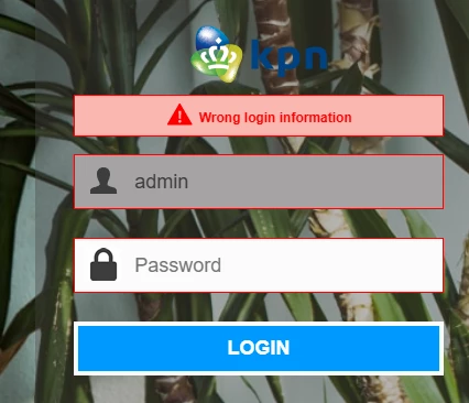 Het admin wachtwoord geprint op de achterkant werkt niet.