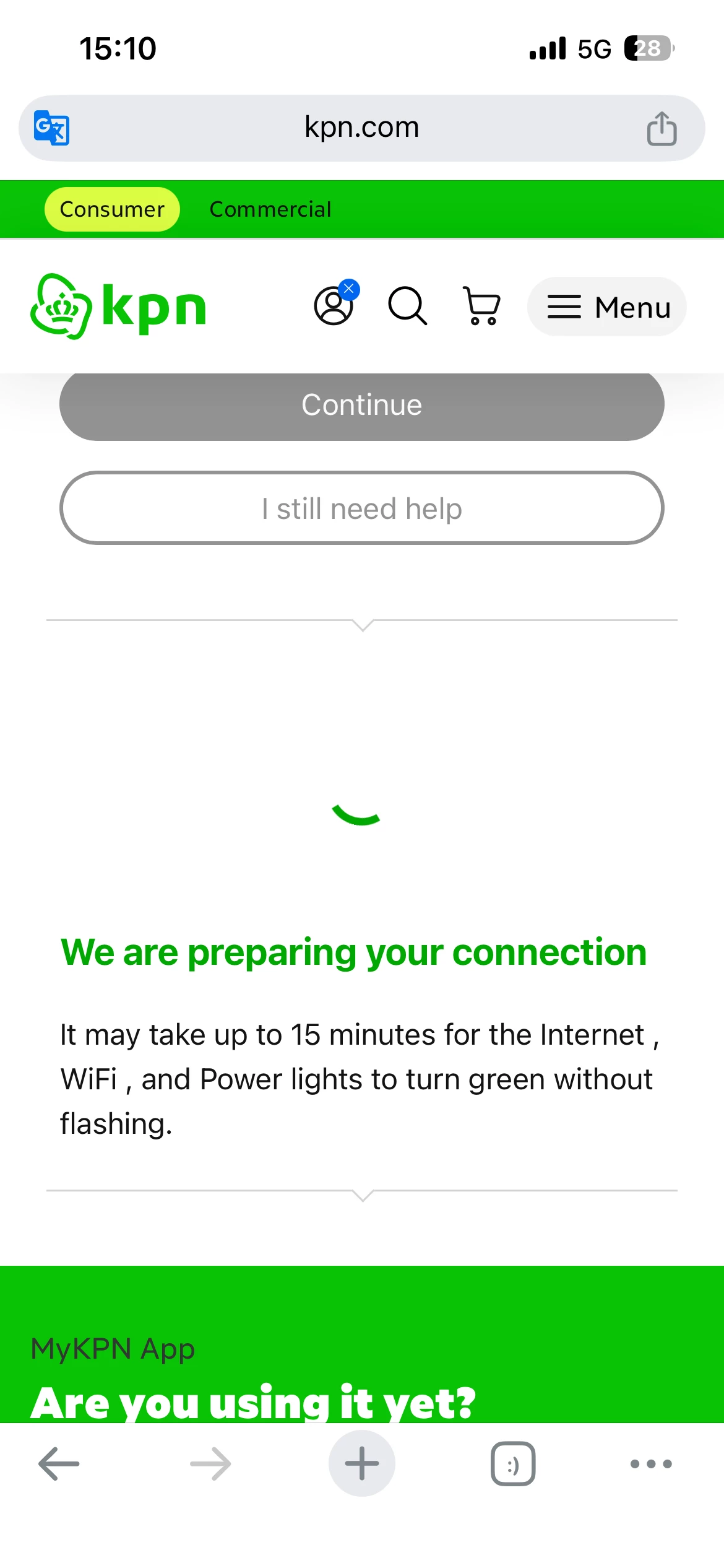 If you have tried that and didn't get further, it's best to make a callback appointment via our site. That way a colleague can check the connection together with you, and decide what the next steps should be.