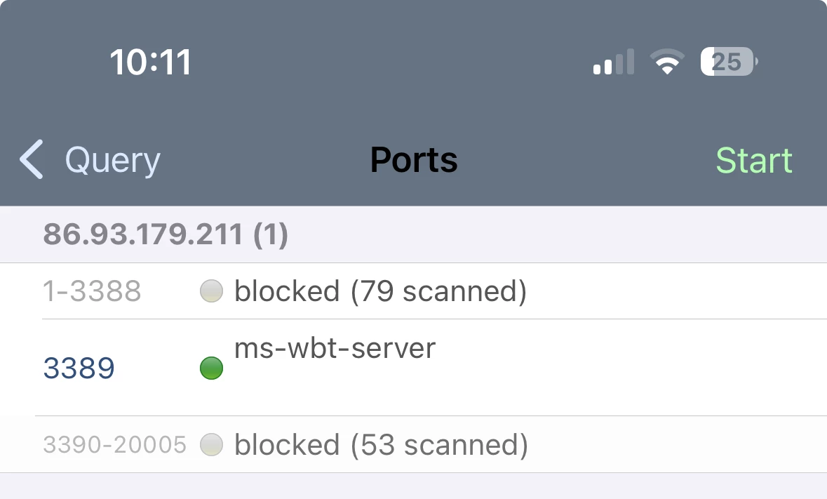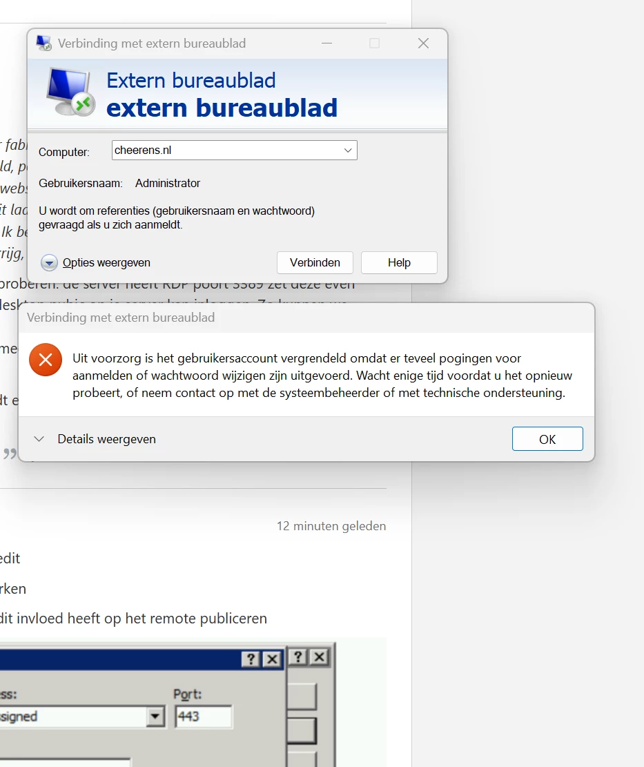 maar kan een veiligheid zijn in 2025 en port scan laat 3389 geopend zien dus je forwarding werkt