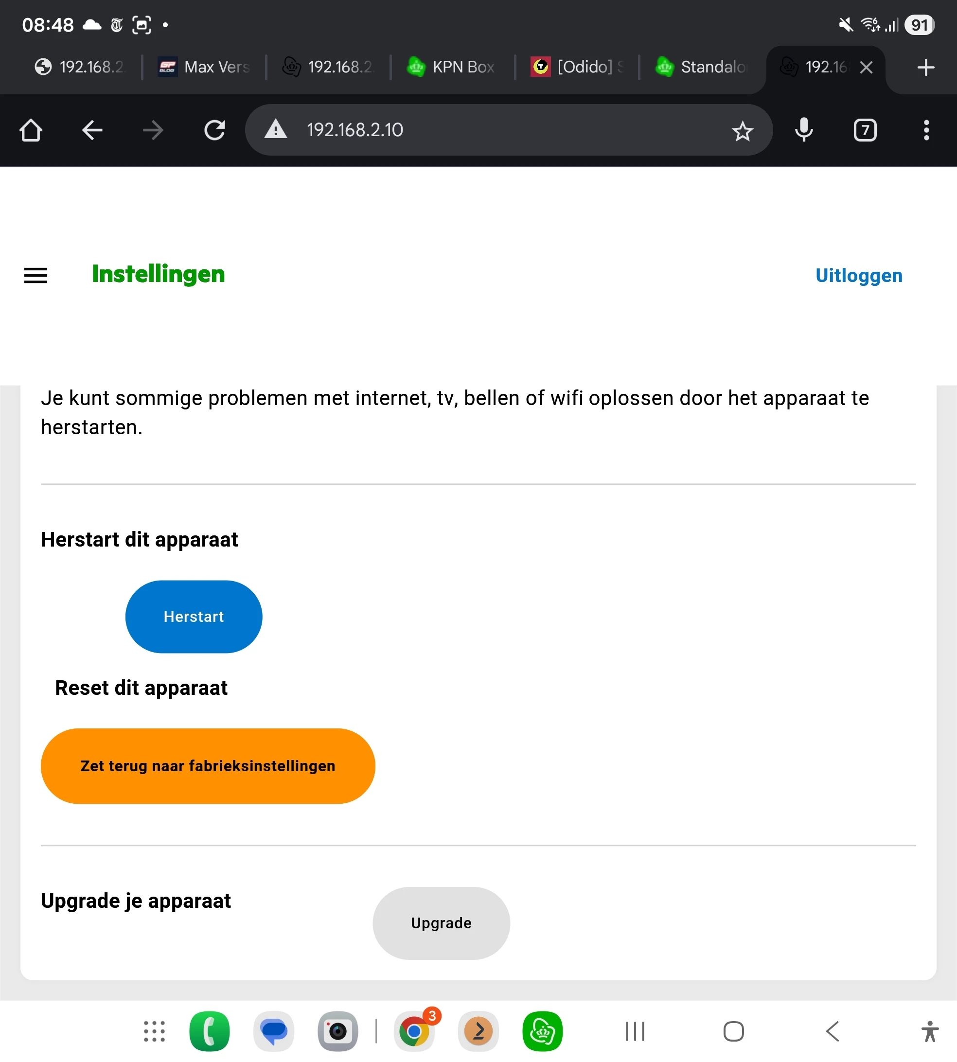 Log in op de webinterface van het modem: Onder Instellingen -> Herstart thuisnetwerk -> Herstart