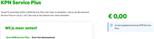 Sinds 12 november 2024 was het niet meer mogelijk om KPN Service Plus aan te schaffen voor nieuwe klanten: