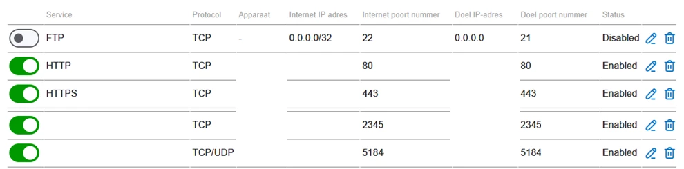 In de port forward regels staan enkel de poorten 80 en 443 om door te zetten naar een specifiek IP adres.