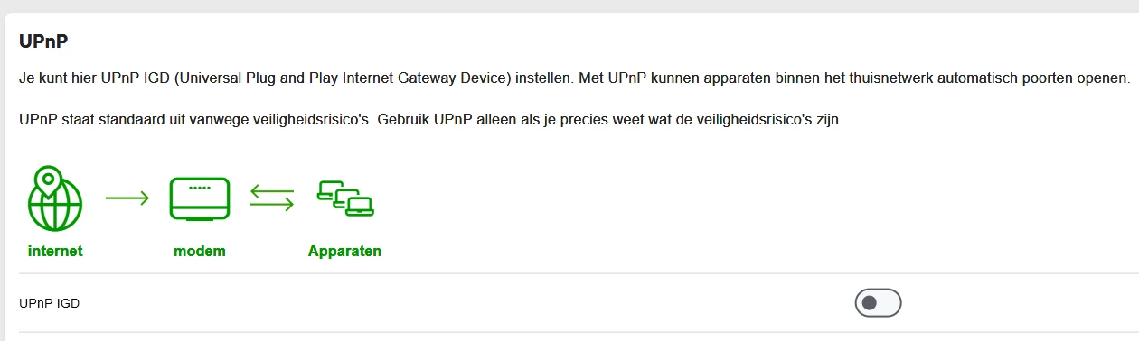UPnP staat uit voor de zekerheid.