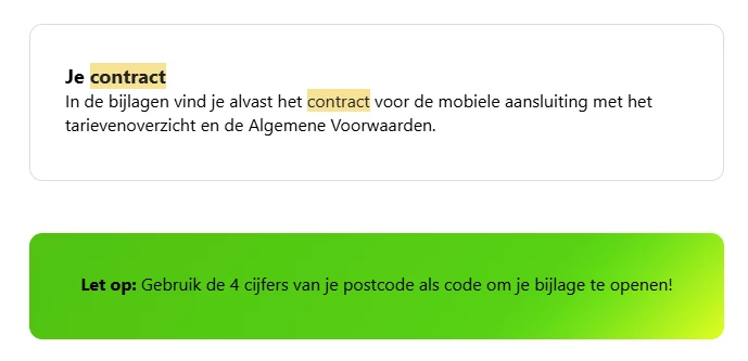 Altijd je email goed doorlezen, bij nieuwe abonnementen is het contract beveiligd met de cijfers van de postcode. Toevallig heb ik nog zo een mailtje liggen van mijn 097 contract.