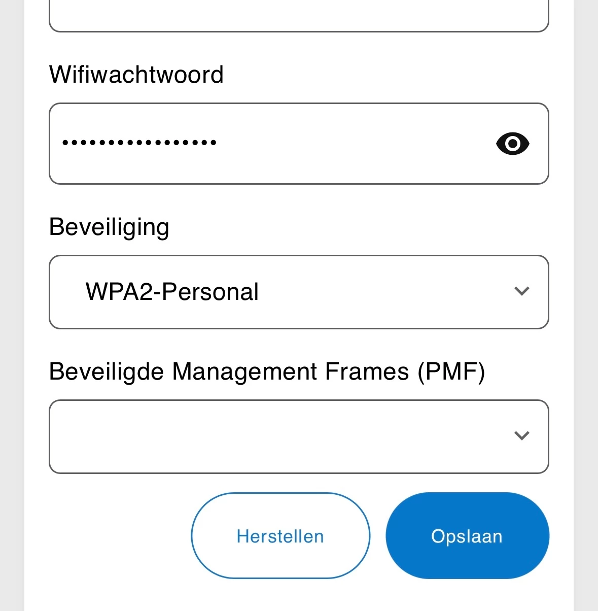 Staat de beveiliging wat je gebruik voor de Wifi toevallig op WPA3 ipv WPA2-personal? Gezien niet alle apparaten daar goed mee om kunnen gaan. Zorg er ook voor dat PMF uit staat of niet geselecteerd.
