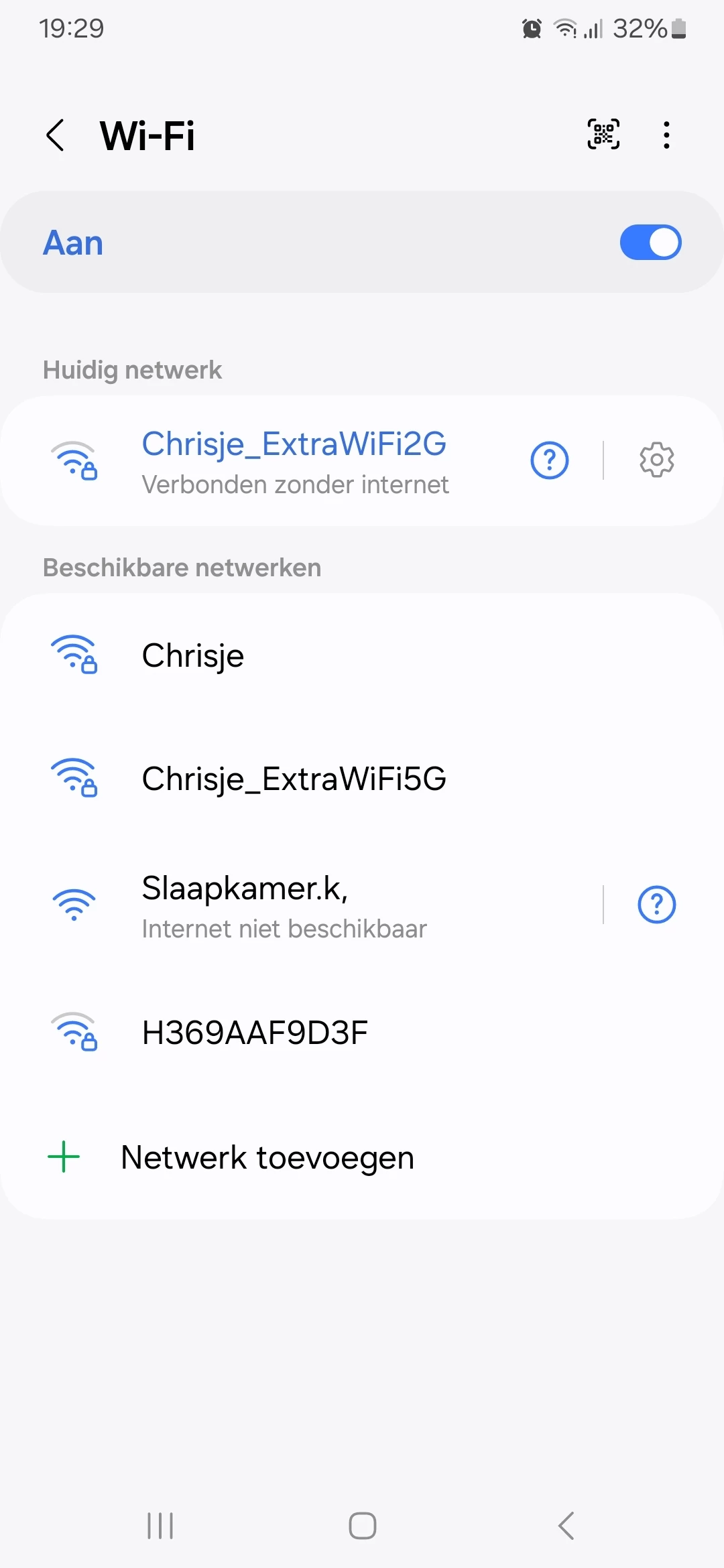 Als ik me telefoon of tablet verbind met de 2.4 extra wifi dan verbinden die wel maar is dan verbonden zonder internet geeft die aan en kan dus de rest niet verbinden