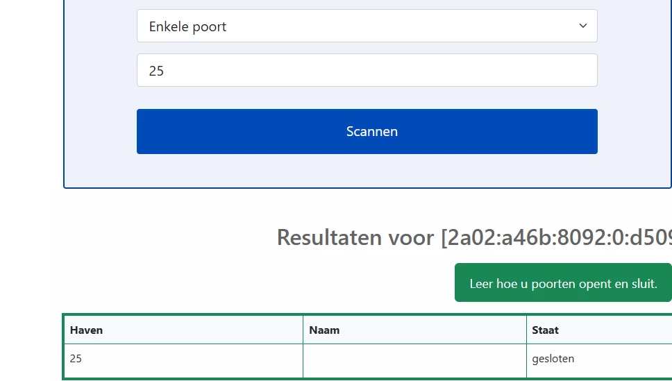 Heb vaker problemen met Poort 25 maar nu getest door