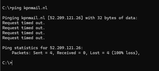 kan je met een ping er eens achter komen op al die machines wat het IP-adres is van kpnmail.nl?