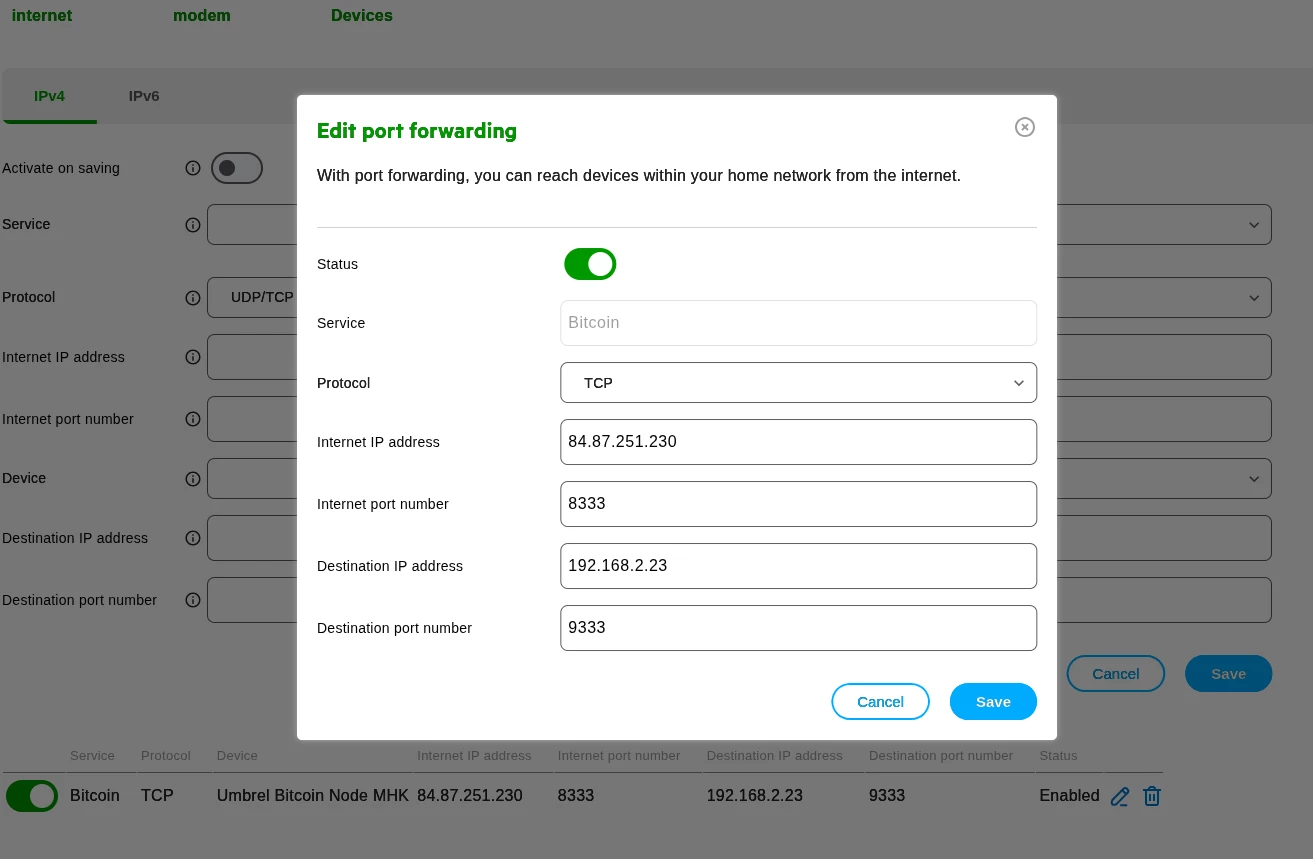 Ik draai een Bitcoin node op RasPi5 met Umbrel OS v1.5. Echter kan ik enkel via lokaal netwerk verbinding maken en niet via het internet. uPnP staat uit.