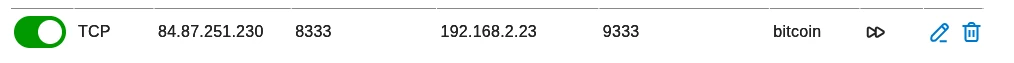 Node software is Bitcoin Knots v29.2.knots20251110. In de settings van Knots heb ik de ‘Incoming Peer Connections’ aangevinkt. Omdat ik na veel zoekwerk erachter ben gekomen dat Bitcoin Knots Node software luistert naar port 9333 heb ik dit in de settings van de router ook zo ingevuld.