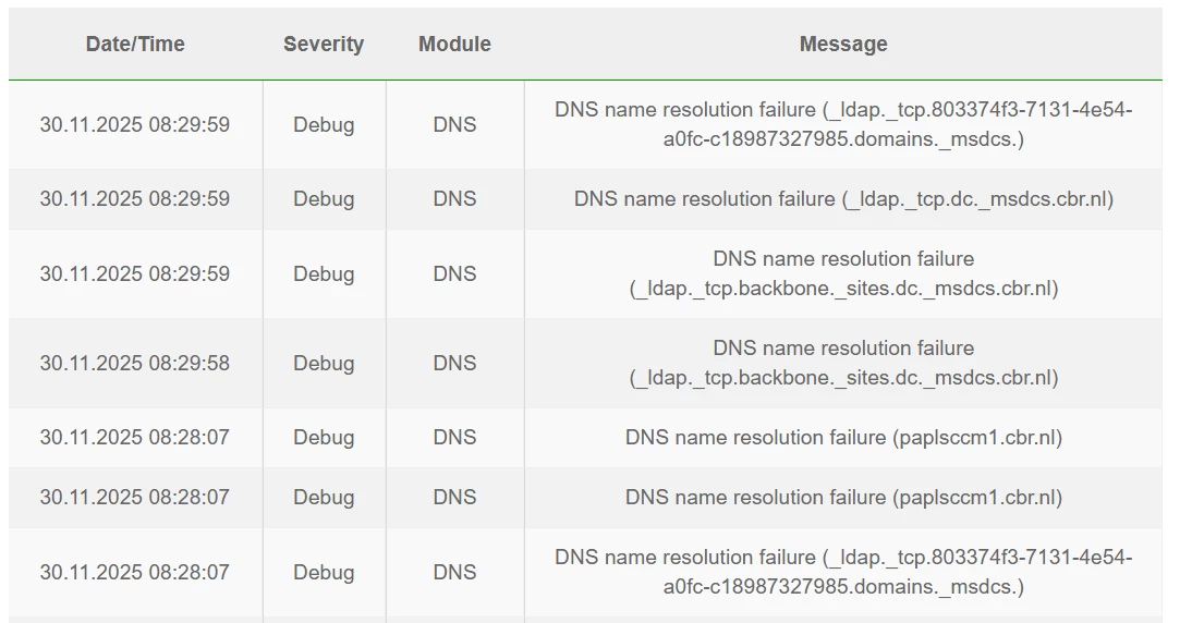 Wat die log laat zien is totaal niet interessant. Dat gaat over cbr.nl. dat heeft niets met de apparatuur van KPN te maken hoor. En msdcs ook niet. Dat is iets van Microsoft. Het zijn requests die mislukken. Niets bijzonders. Dat gebeurt heel regelmatig. Soms is dat zelfs de bedoeling.