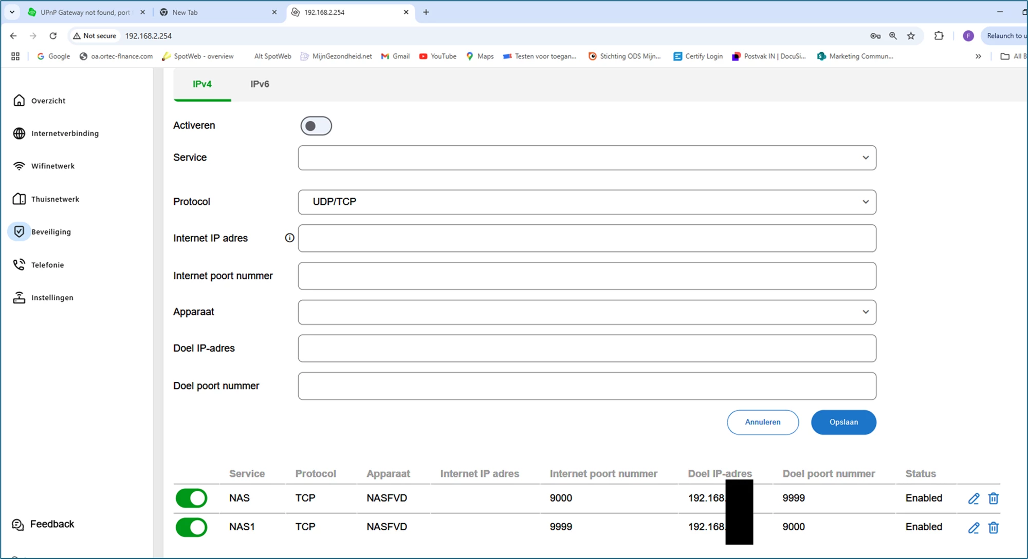 Kun je een schermafdruk plaatsen van de portforwarding(s)?