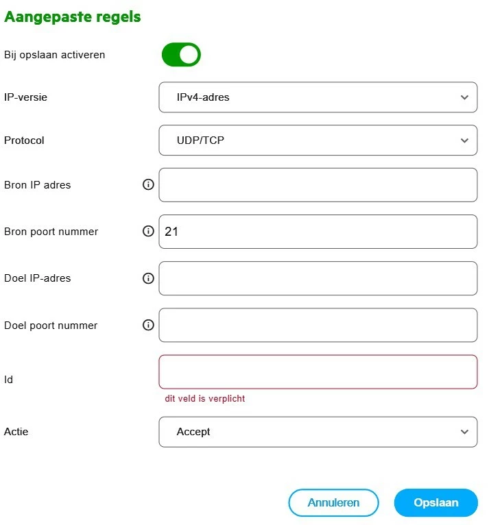 Waar vind ik het id van mijn modem? Verplicht veld bij instellen aangepaste regels