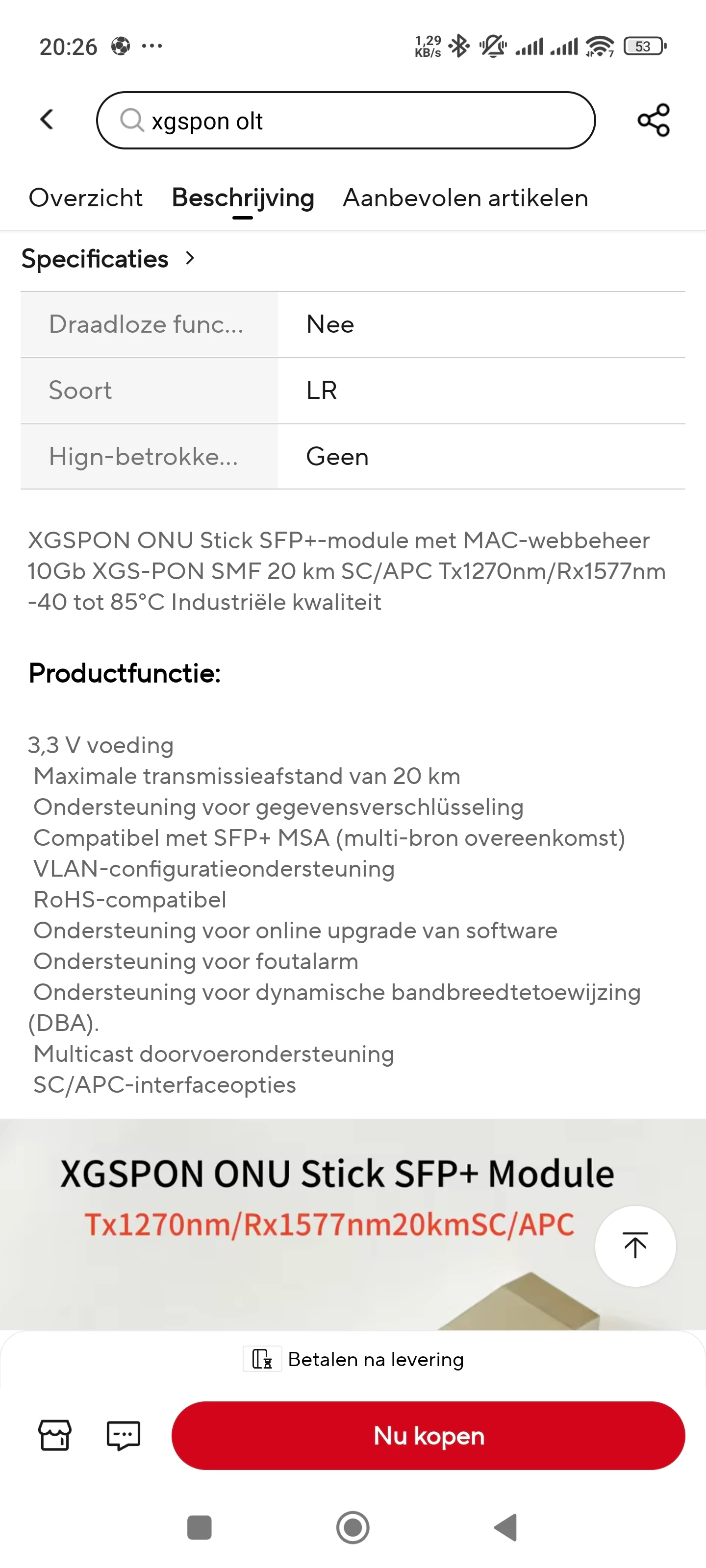 Hoi zou deze sfp+ onu xgspon werken bij kpn netwerk ?