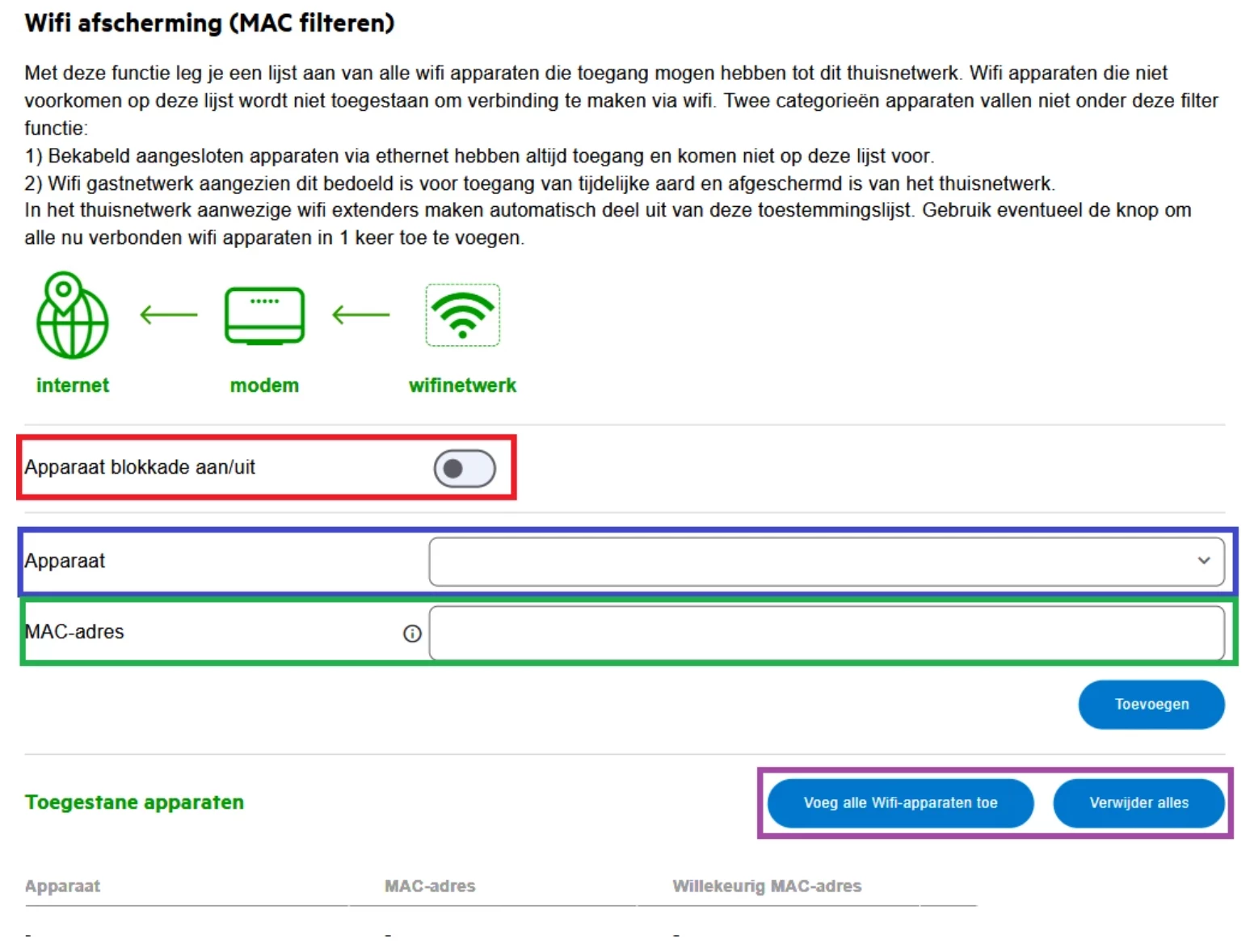 WiFi Afscherming (MAC filtering) werkt niet meer Experia Box v12 (V12.C.25.06.06)