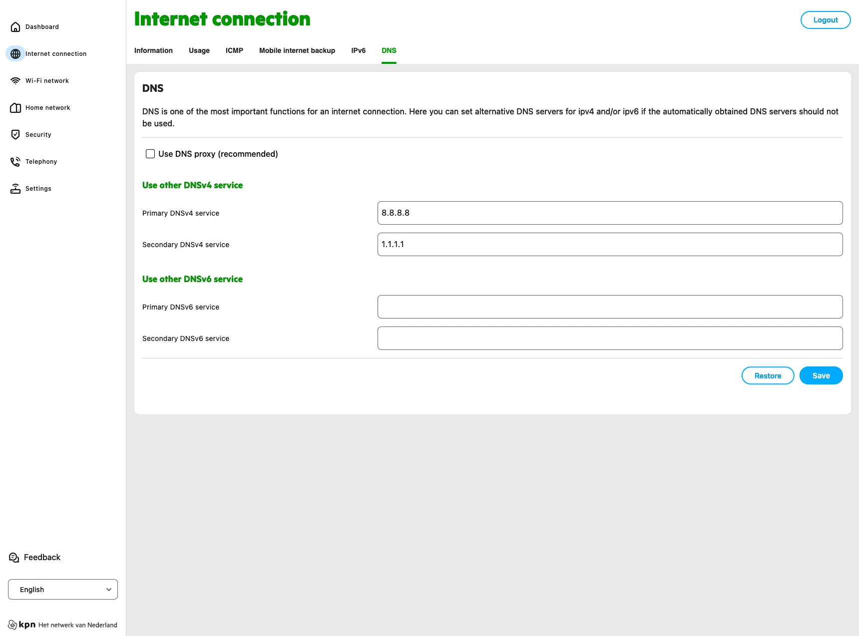 Inmiddels is het bijna vijf uur geleden dat ik deze wijziging probeer door te voeren. De Experiabox meldt dat de aanpassing is opgeslagen, maar ik kan dit niet terug zien. Telkens als ik de pagina herlaad blijft de oude DNS van toepassing. Ook een reset van de Experiabox lost dit probleem niet op.