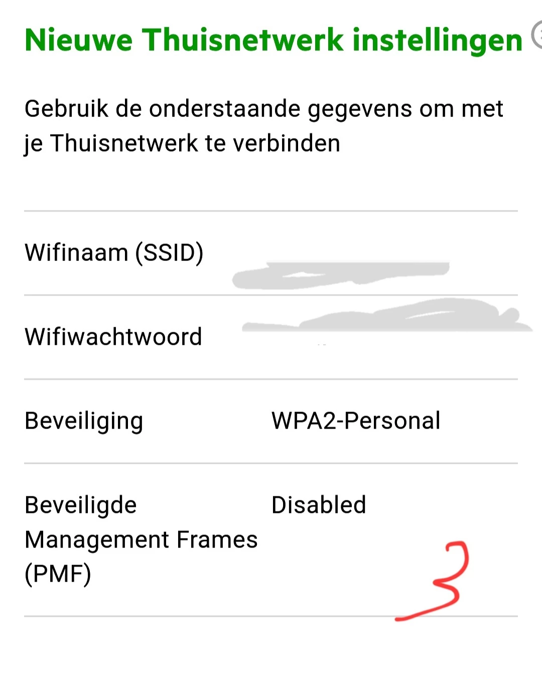 Echter lukt mij dit niet. Ik zie WPA3 wel in de lijst staan en kan hem ook gewoon selecteren (foto1). Dan druk ik op opslaan en krijg dan een bevestiging (foto 2). Dan druk ik op OK en krijg dan een pop up met mijn nieuwe instellingen met WPA2 (foto 3).