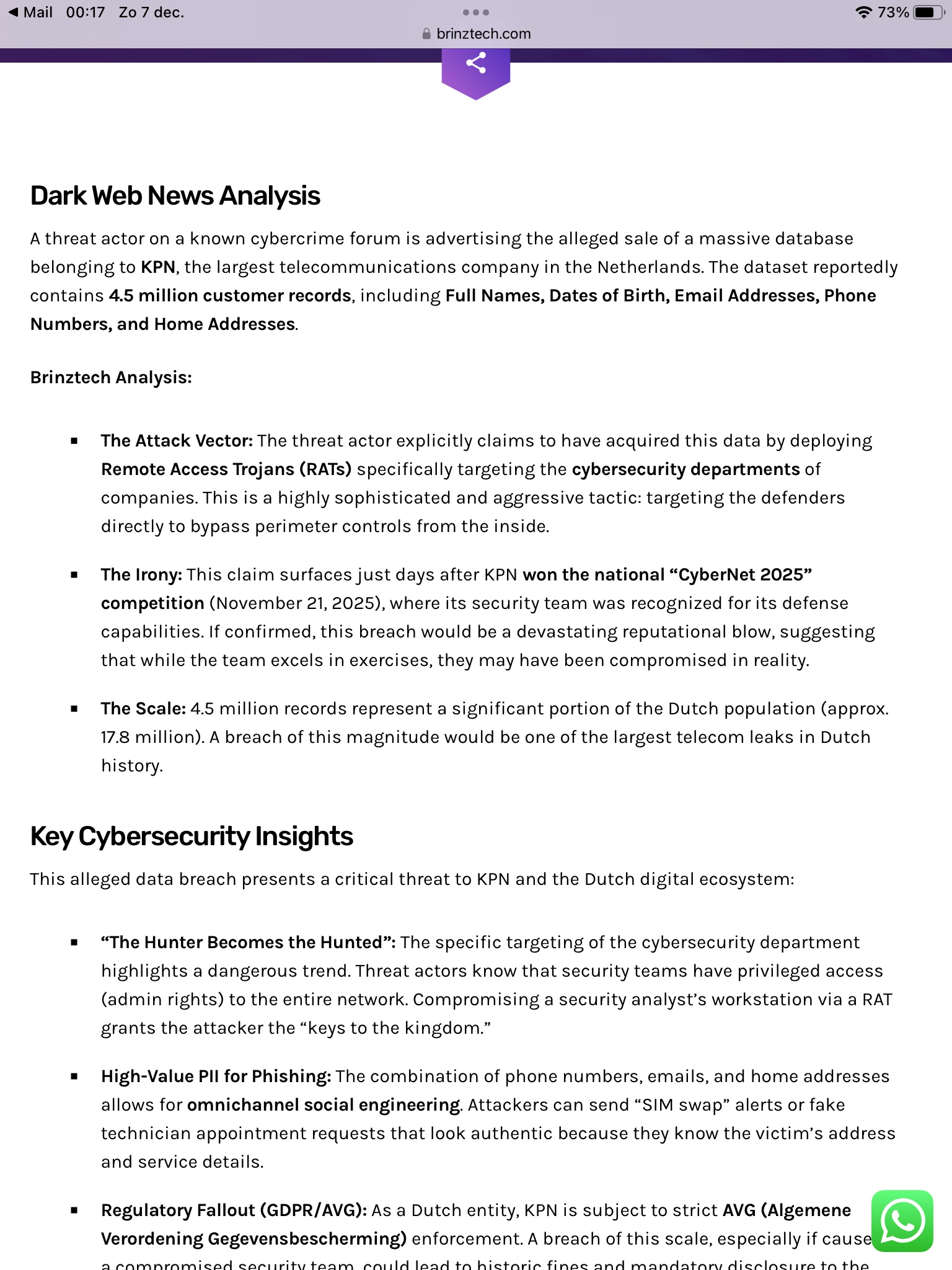 brinztech.com/breach-alerts/brinztech-alert-alleged-database-of-kpn-dutch-telecom-is-on-sale-4-5-million-records