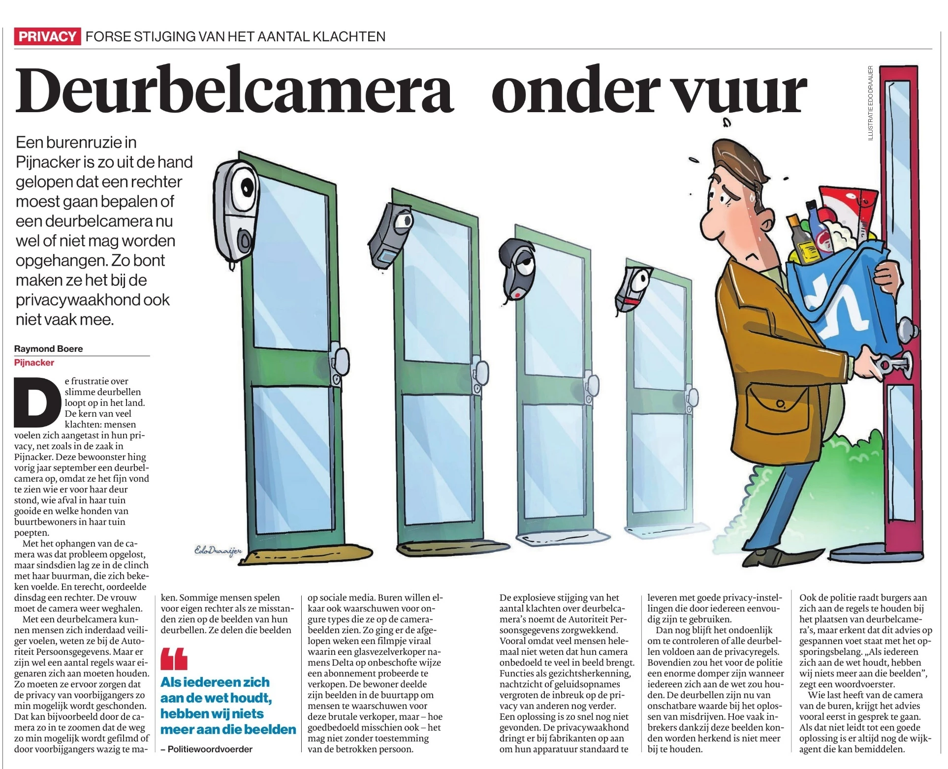 Maar ook ik overtreed hiermee de wetgeving. Mijn deurbel hangt op drie meter van de weg en filmt iedereen en alles wat voorbij komt. Hier is veel overlast en vandalisme, dus ik heb hem extra gevoelig ingesteld. Veel mensen hebben dit direct aan de weg, en het wordt gewoon gedoogd. Bij klachten wordt er bijna niet opgetreden, tenzij je zelf naar de rechter stapt. Ze kunnen de wetgeving net zo goed aanpassen, want je houdt het toch niet tegen; dit is gewoon niet te handhaven.