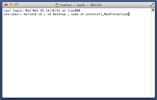 cd ; cd Desktop ; sudo sh uninstall_MacProtection