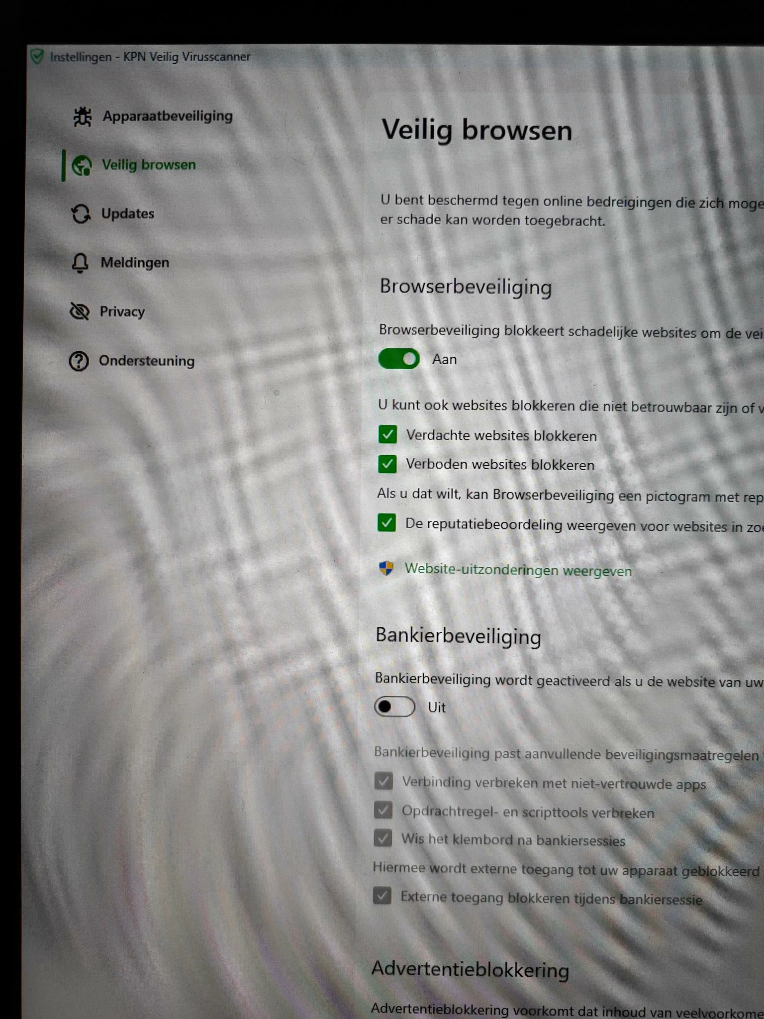 Heb je een screenshot van waar je Veilig browsen kunt uitzetten. Ik kan dat niet vinden binnen de KPN Veilig omgeving.