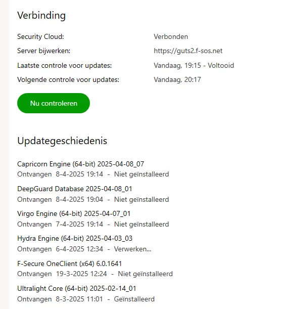 Als ik op bijwerken druk dan krijg ik de laatste updates te zien, maar die zijn niet allemaal geïnstalleerd