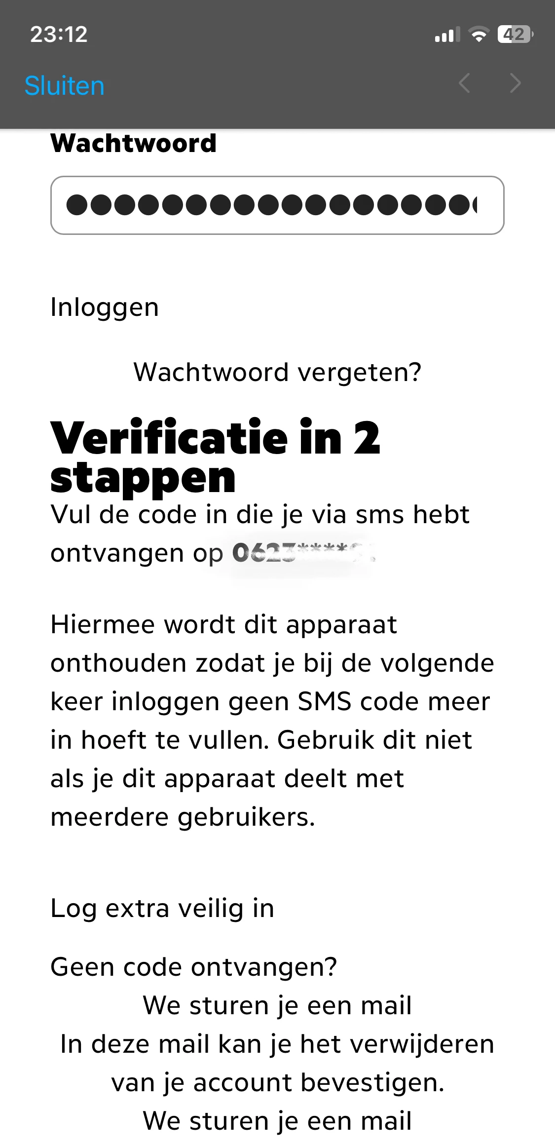 Als dit klopt, dan kan het zijn dat de verificatie sms binnen komt in de spam. Controleer daarom ook jouw spam folder. Dit doe je zo: