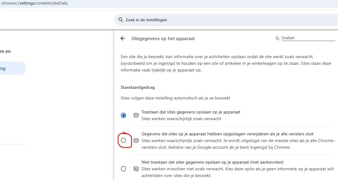 Ook niet als je naar "chrome://settings/content/siteData" gaat?
