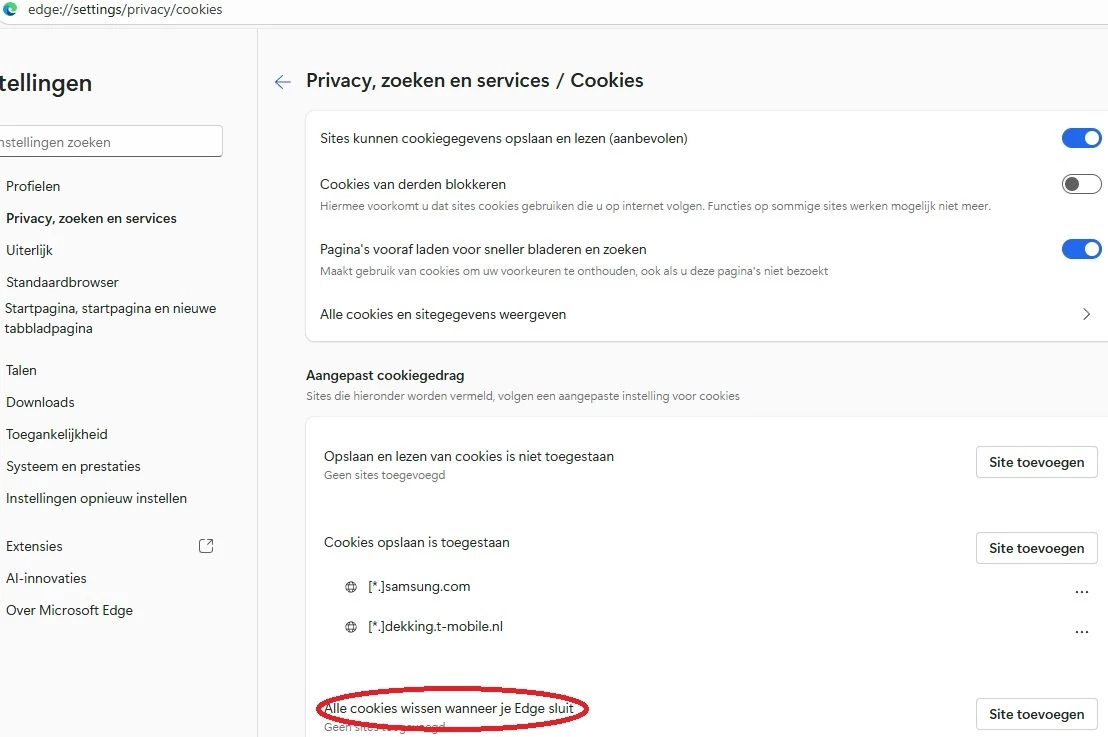 Automatisch cookies wissen bij afsluiten van de browser kan ik zowel in Edge als Google Chrome tegenwoordig niet eens meer vinden ook.