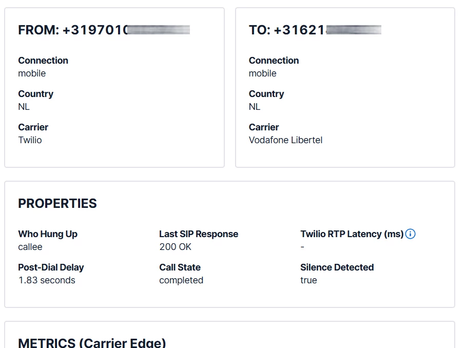Ter info, zoals in het topic geschreven zijn er geen simkaarten maar worden de oproepen softwarematig uitgevoerd, volledig automatisch via Twilio. We zijn inmiddels een stapje verder, KPN heeft toch ergens het nummer geblokkeerd zoals het deed vermoeden maar het lijkt erop dat het vanaf de kant van Twilio via de "partner carrier” kan worden vrijgegeven.