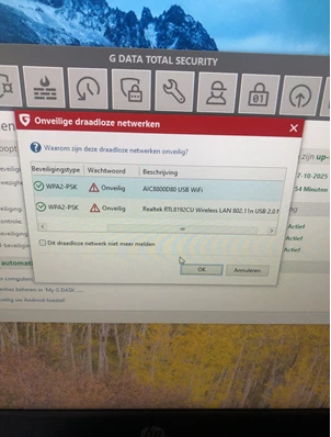 Security center geeft aan dat WLAN niet beveiligd is