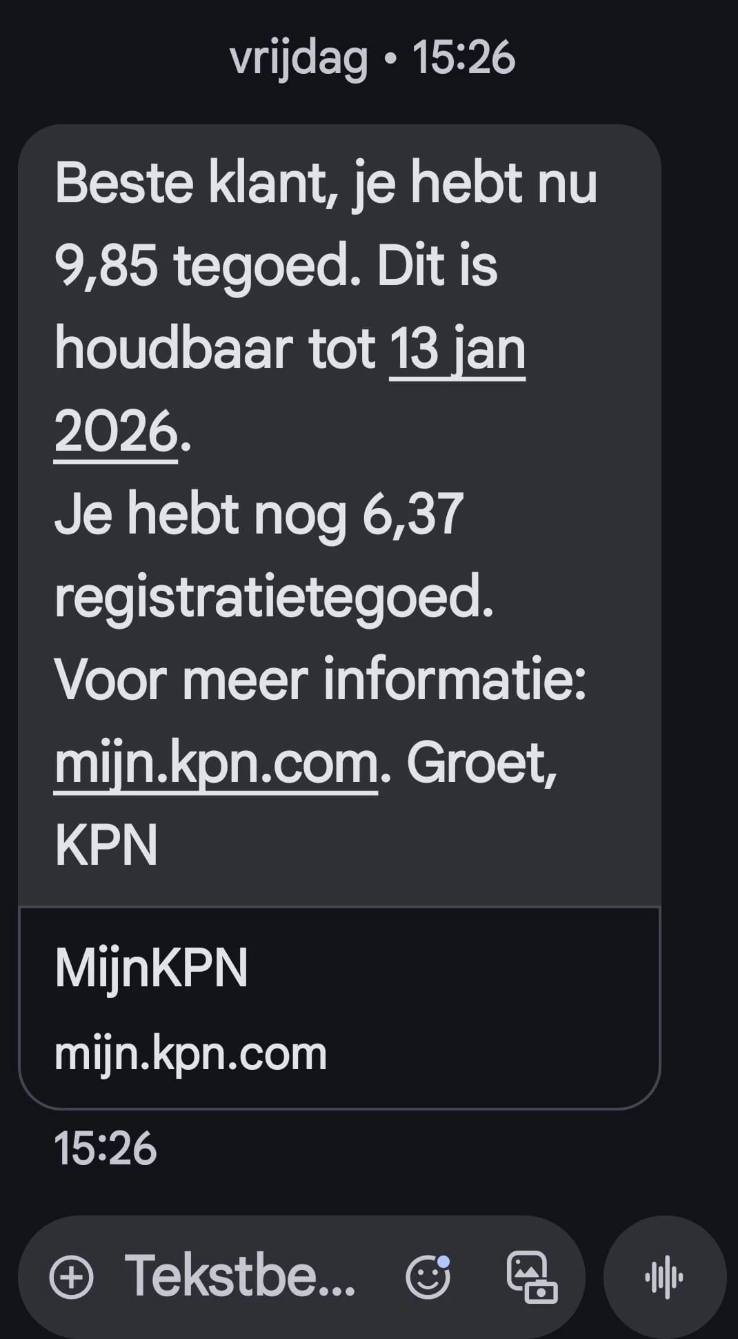 Ik heb de SMS gekregen. Beltegoed klopt € 1,95. Maar het gaat me Om de € 7,50.
