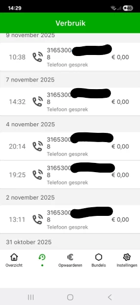 Een vraag uit nieuwsgierigheid: in mijn verbruikslijstje zie ik om de zoveel tijd een vermelding van mijn eigen telefoonnummer met een 3165300 nummer ervoor die voor 0,00 euro contact maakt. Wat betekent dit eigenlijk precies of wat gebeurt hier eigenlijk?