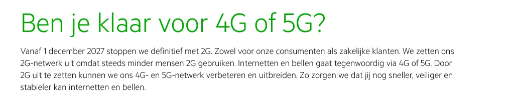 2G netwerken wel, maar niet 2g-simkaarten, deze hebben nog oude techniek en moet vervangen worden om te kunnen werken op 4G/5G netwerken. Zie hier